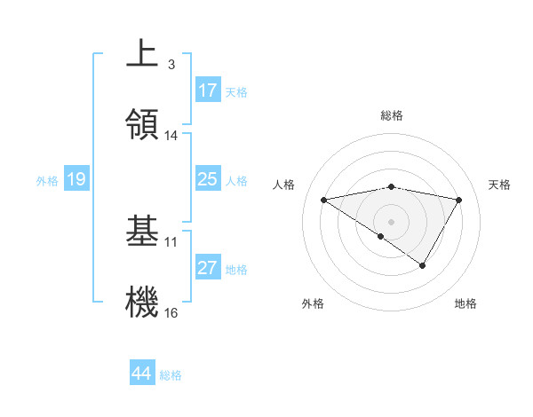 上領 基機さんの天格は17画の4点!