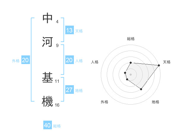 中河 基機さんの天格は13画の5点!