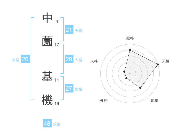 中薗 基機さんの天格は21画の5点!
