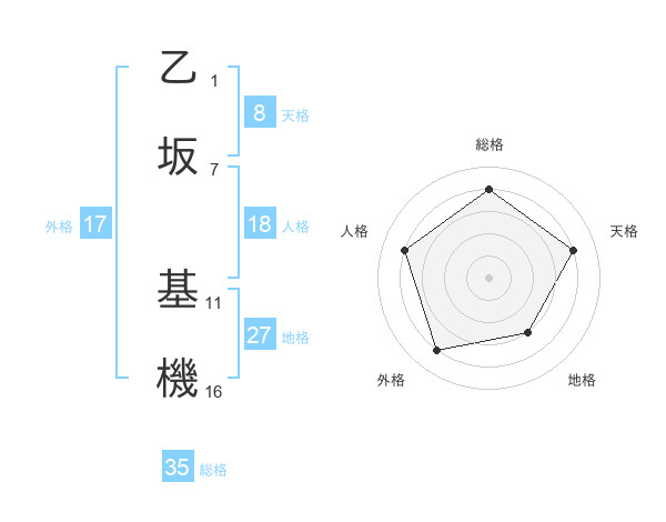 乙坂 基機さんの総格は35画の4点!