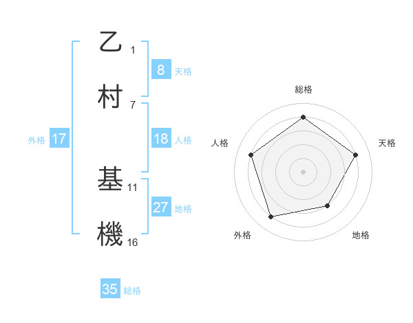 乙村 基機さんの天格は8画の4点!