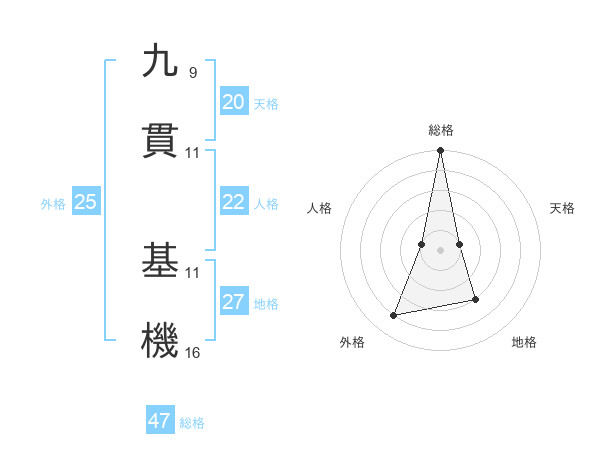 九貫 基機さんの総格は47画の5点!