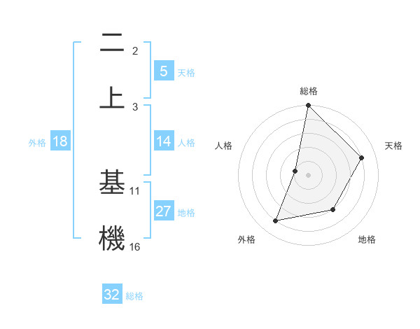 二上 基機さんの総格は32画の5点!