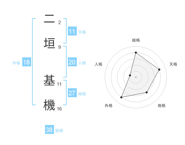 二垣 基機さんの総格は38画の4点!