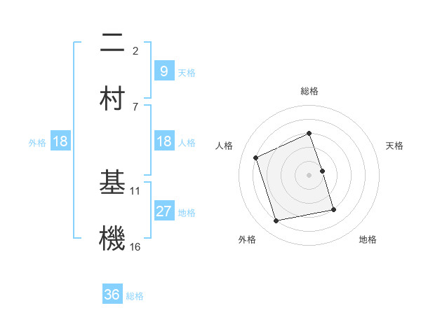 二村 基機さんの人格は18画の4点!