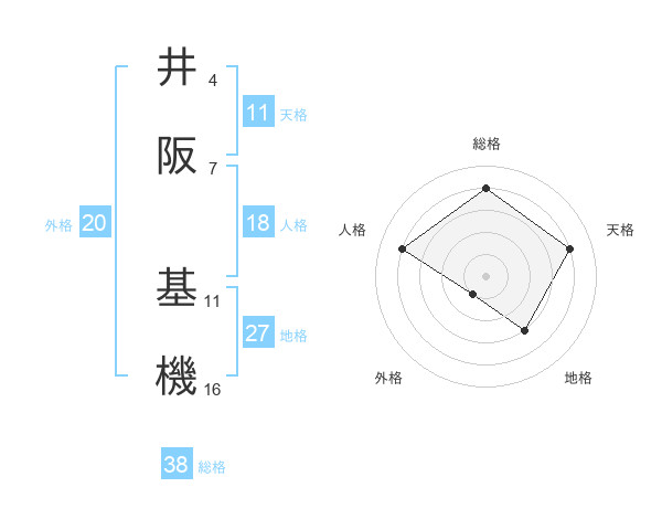井阪 基機さんの総格は38画の4点!