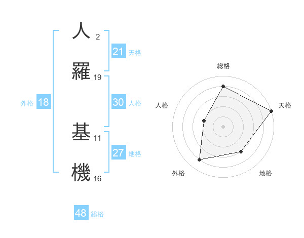 人羅 基機さんの天格は21画の5点!
