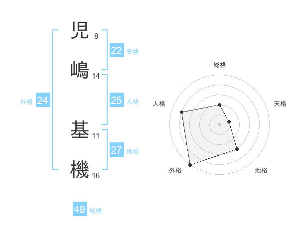 児嶋 基機さんを姓名の画数から五運を鑑定