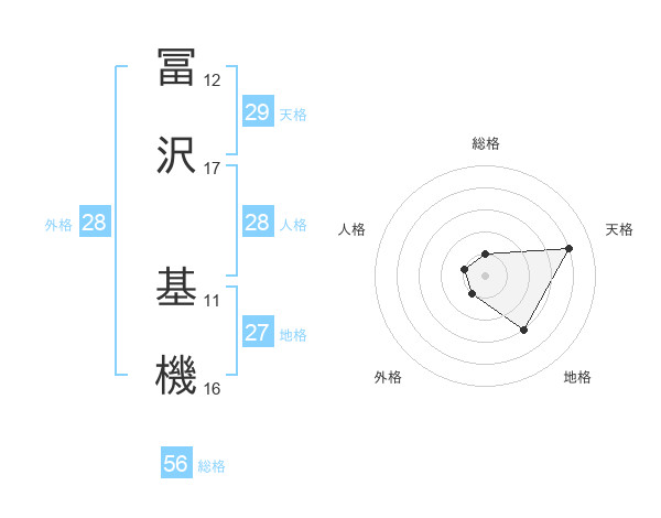 冨沢 基機さんの天格は29画の4点!