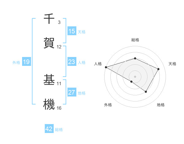 千賀 基機さんの天格は15画の4点!