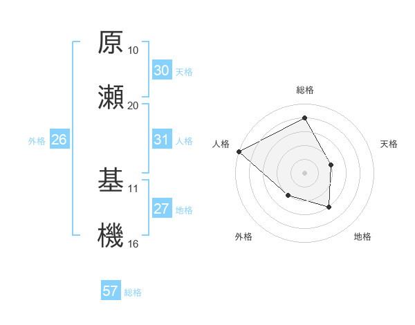 原瀬 基機さんの総格は57画の4点!