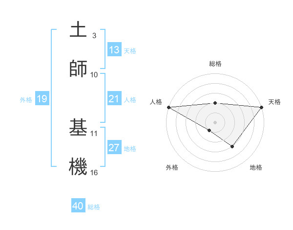 土師 基機さんの総格は40画の2点!