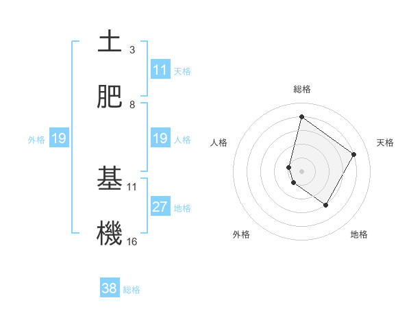 土肥 基機さんの総格は38画の4点!