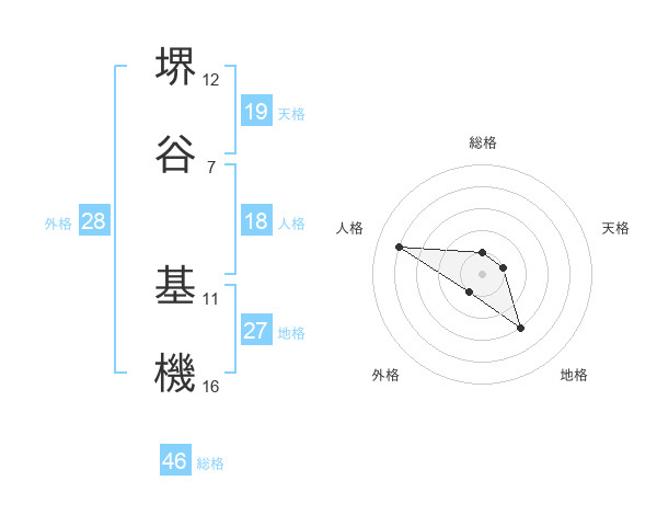 堺谷 基機さんを姓名の画数から五運を鑑定