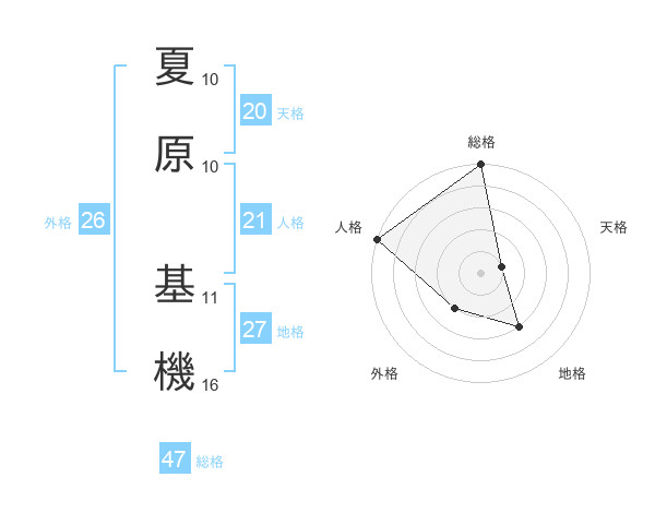 夏原 基機さんの総格は47画の5点!