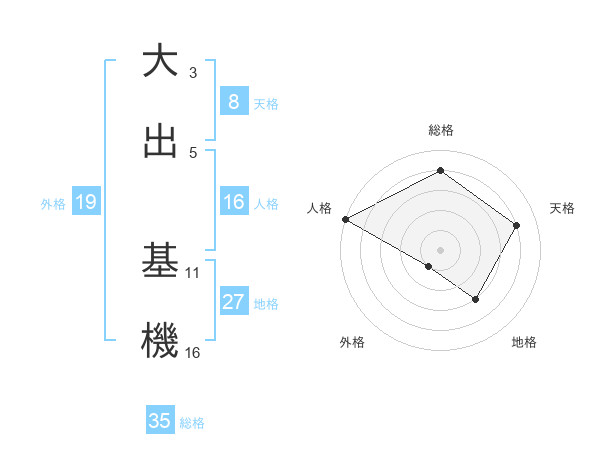 大出 基機さんの総格は35画の4点!
