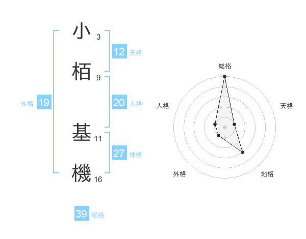 小栢 基機さんの総格は39画の5点!