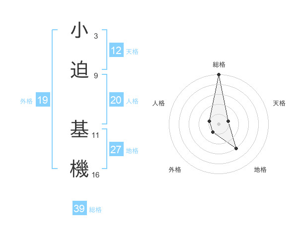 小迫 基機さんの総格は39画の5点!