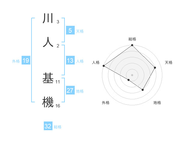 川人 基機さんの総格は32画の5点!