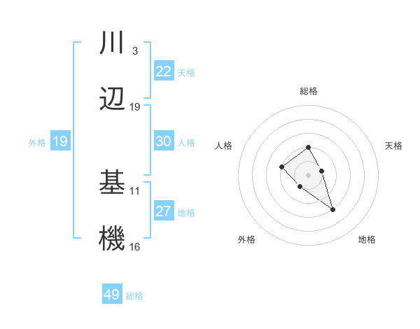 川辺 基機さんを姓名の画数から五運を鑑定