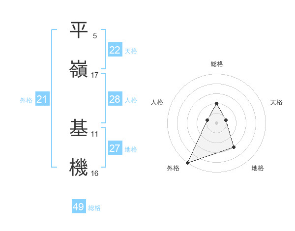 平嶺 基機さんを姓名の画数から五運を鑑定