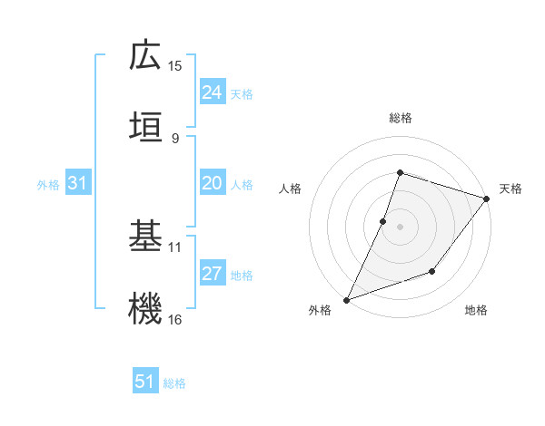 広垣 基機さんの総格は51画の3点!