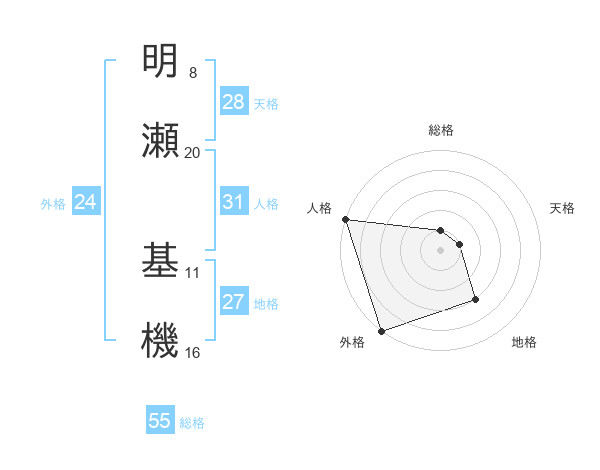 明瀬 基機さんを姓名の画数から五運を鑑定