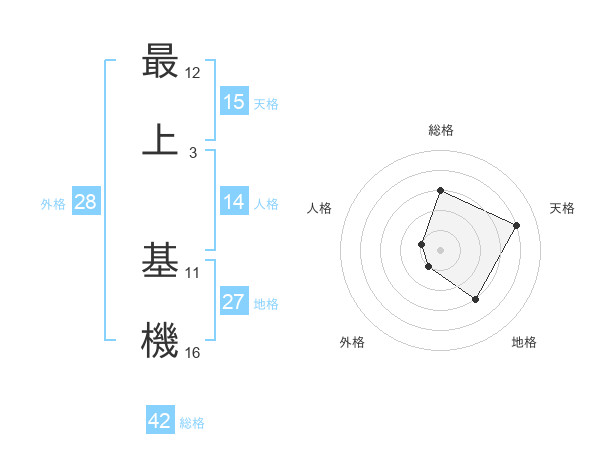 最上 基機さんの天格は15画の4点!