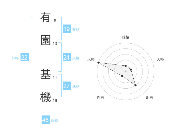 有園 基機さんの総格は46画の1点!