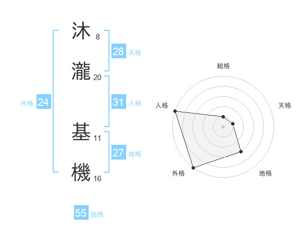 沐瀧 基機さんの総格は55画の1点!