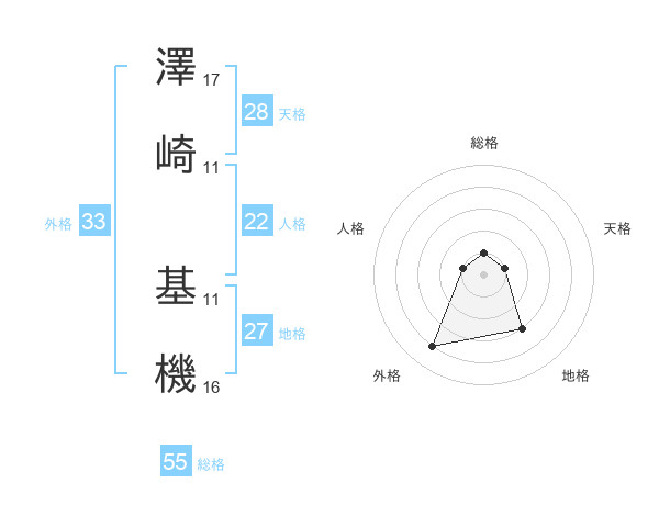 澤崎 基機さんの総格は55画の1点!