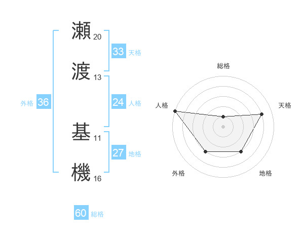 瀬渡 基機さんを姓名の画数から五運を鑑定