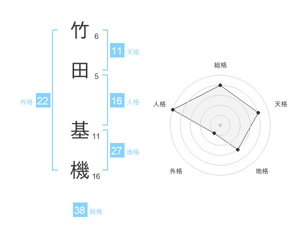 竹田 基機さんの総格は38画の4点!