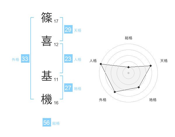 篠喜 基機さんの天格は29画の4点!