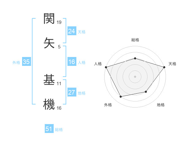 関矢 基機さんの天格は24画の5点!
