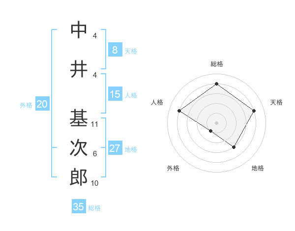 中井 基次郎さんを姓名の画数から五運を鑑定