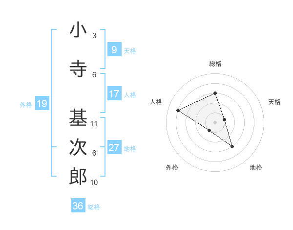 小寺 基次郎さんの外格は19画の1点!