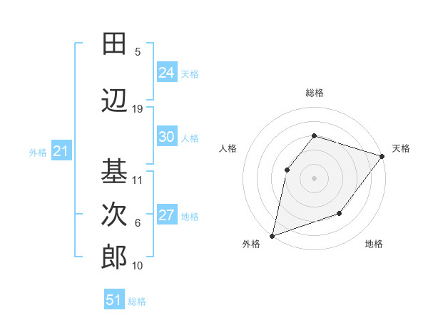 田辺 基次郎さんの総格は51画の3点!