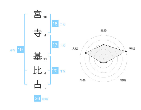 宮寺 基比古さんの総格は36画の3点