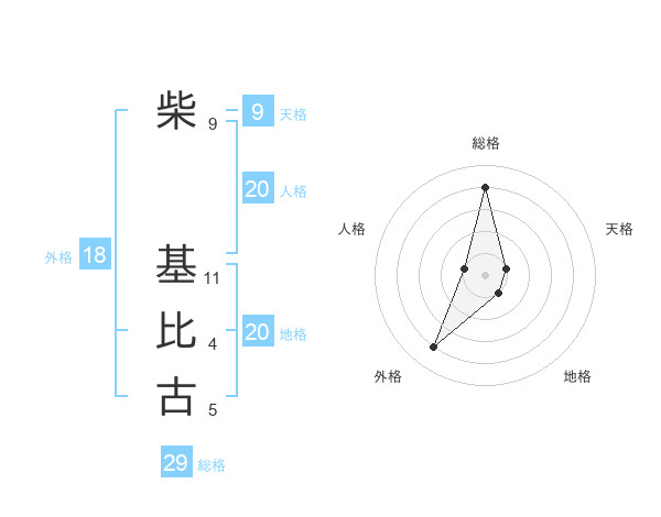 柴 基比古さんの総格は29画の4点!