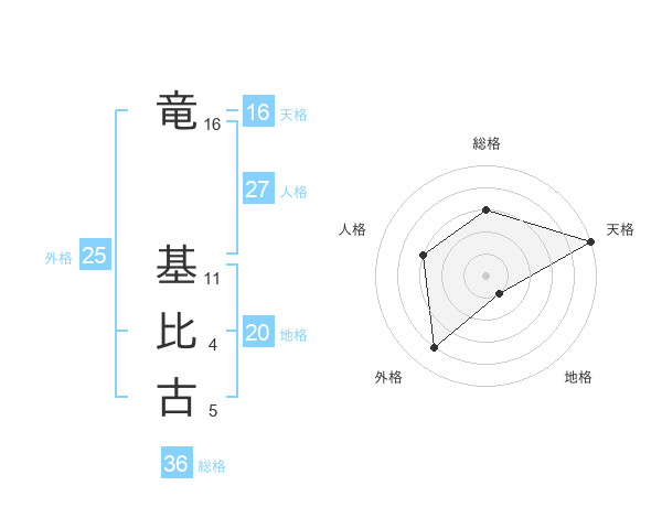 竜 基比古さんの天格は16画の5点!
