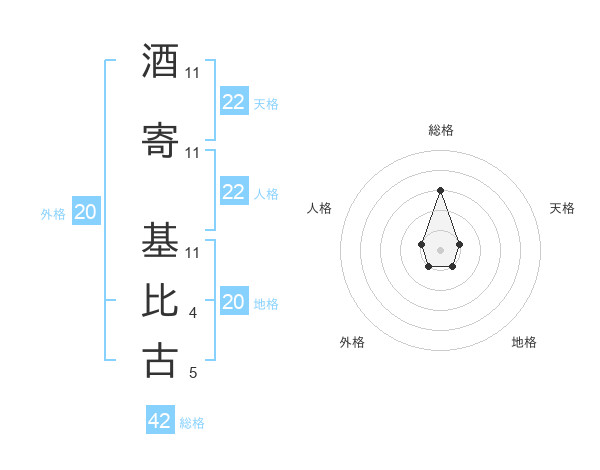 酒寄 基比古さんの地格は20画の1点