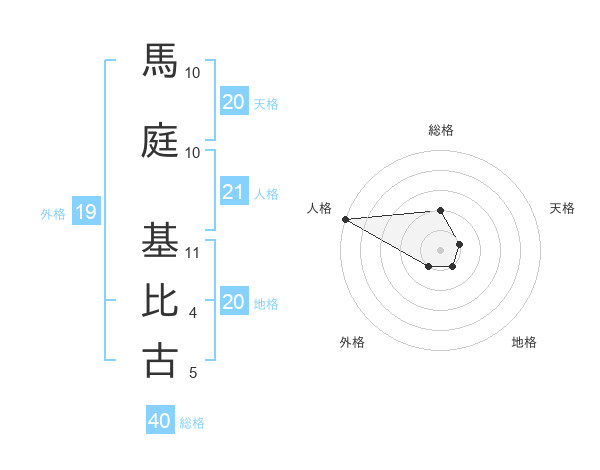 馬庭 基比古さんを姓名の画数から五運を鑑定