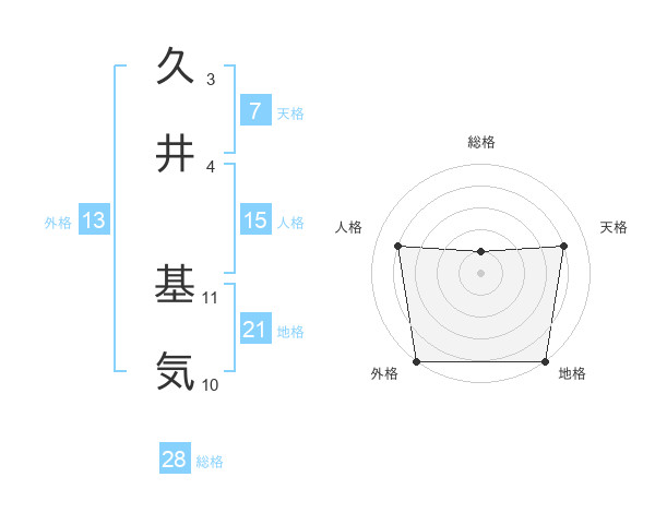 久井 基気さんの天格は7画の4点!