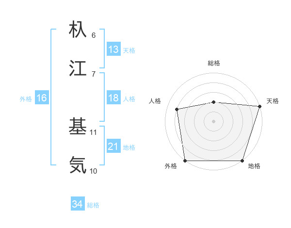 杁江 基気さんの天格は13画の5点!
