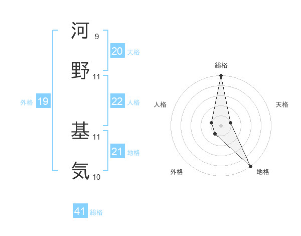 河野 基気さんの総格は41画の5点!