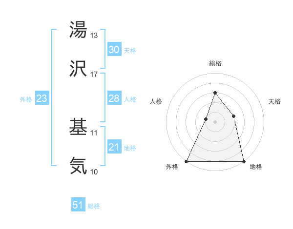 湯沢 基気さんの総格は51画の3点!