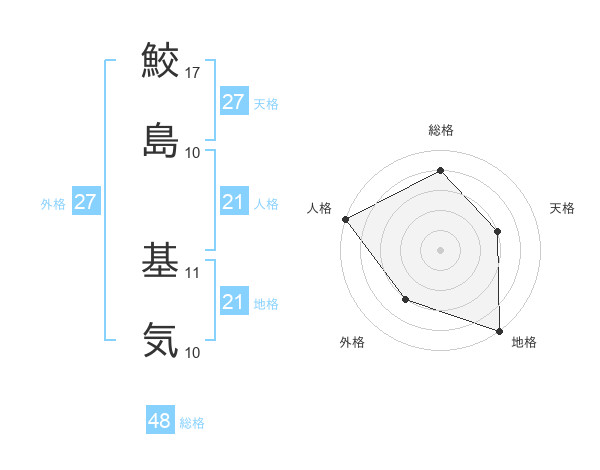 鮫島 基気さんを姓名の画数から五運を鑑定