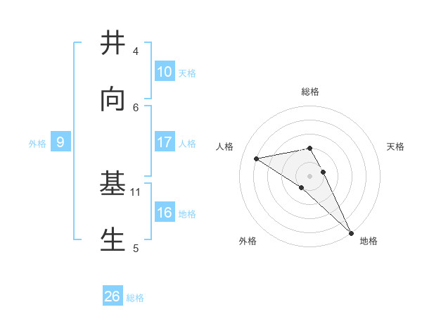 井向 基生さんの総格は26画の2点!