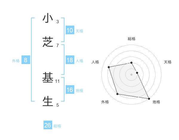 小芝 基生さんの総格は26画の2点!